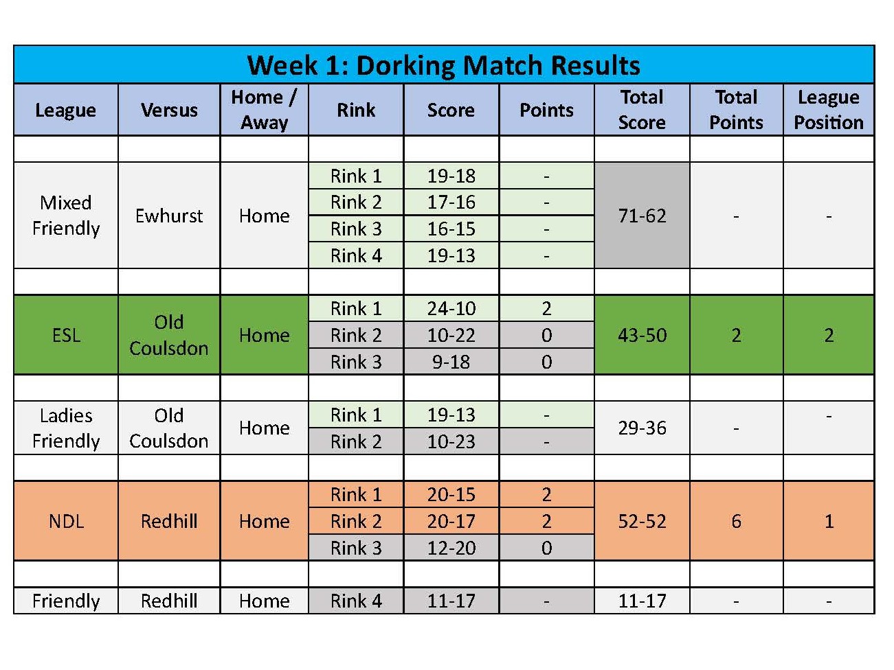 A great start to the season at Ewhurst with a win on all 4 rinks in the mixed friendly. Especially impressive were the close matches - with 3 teams winning by just one shot.
