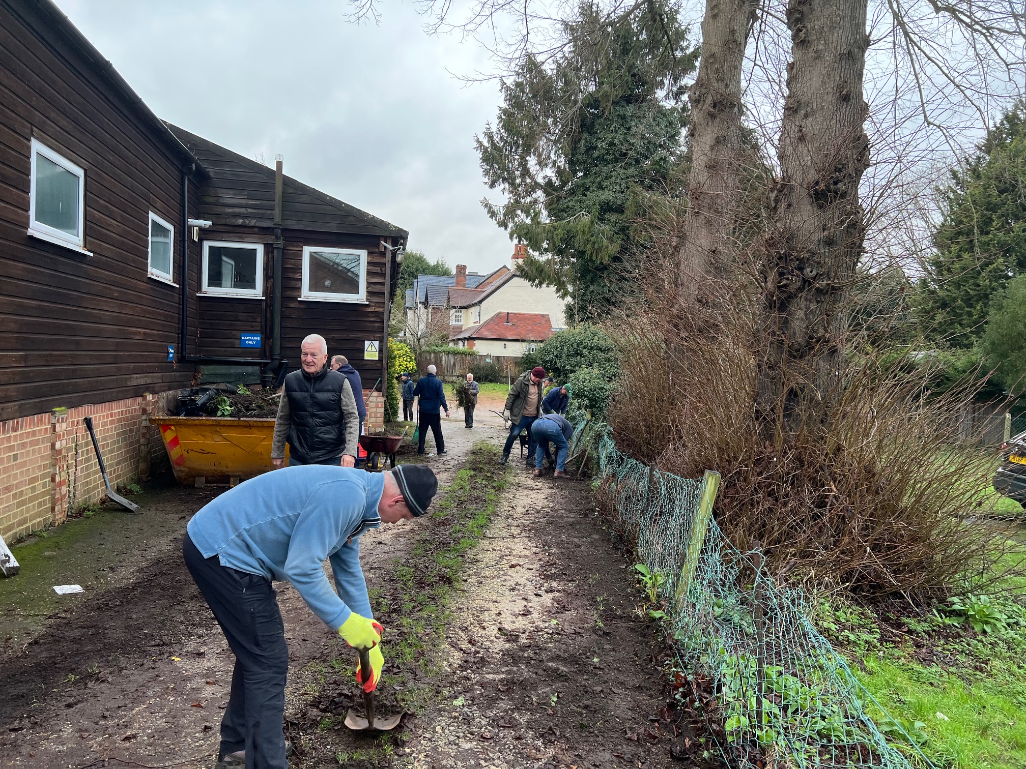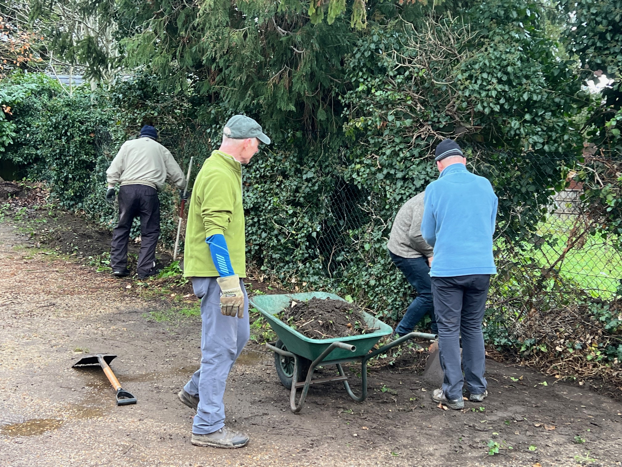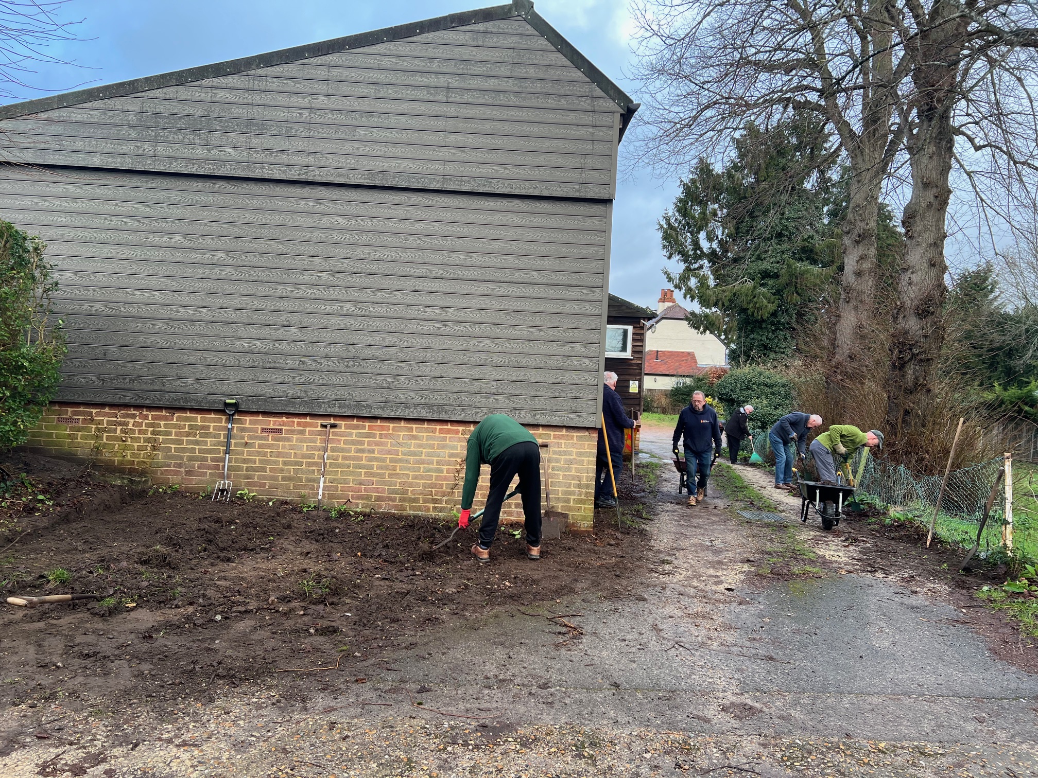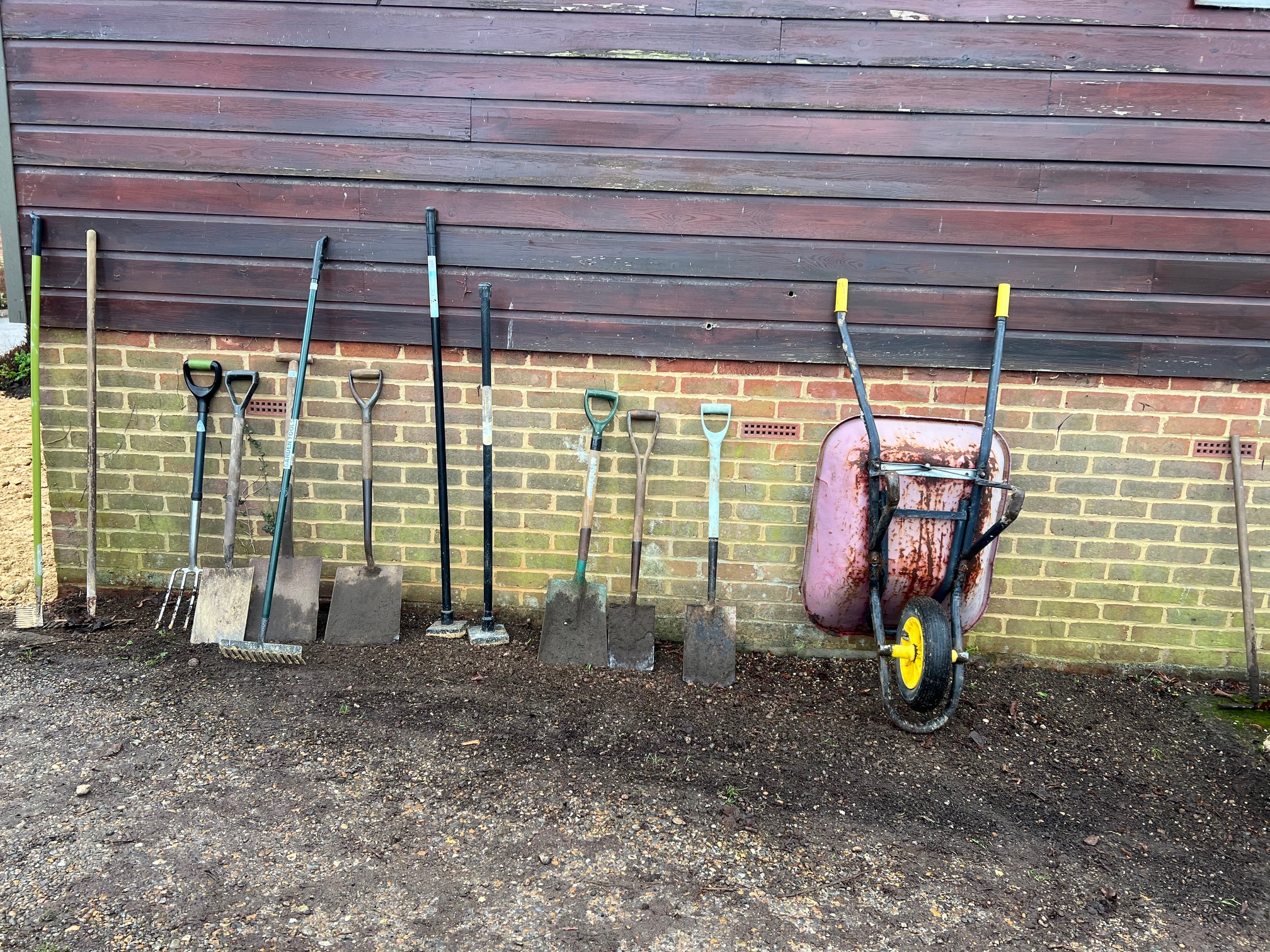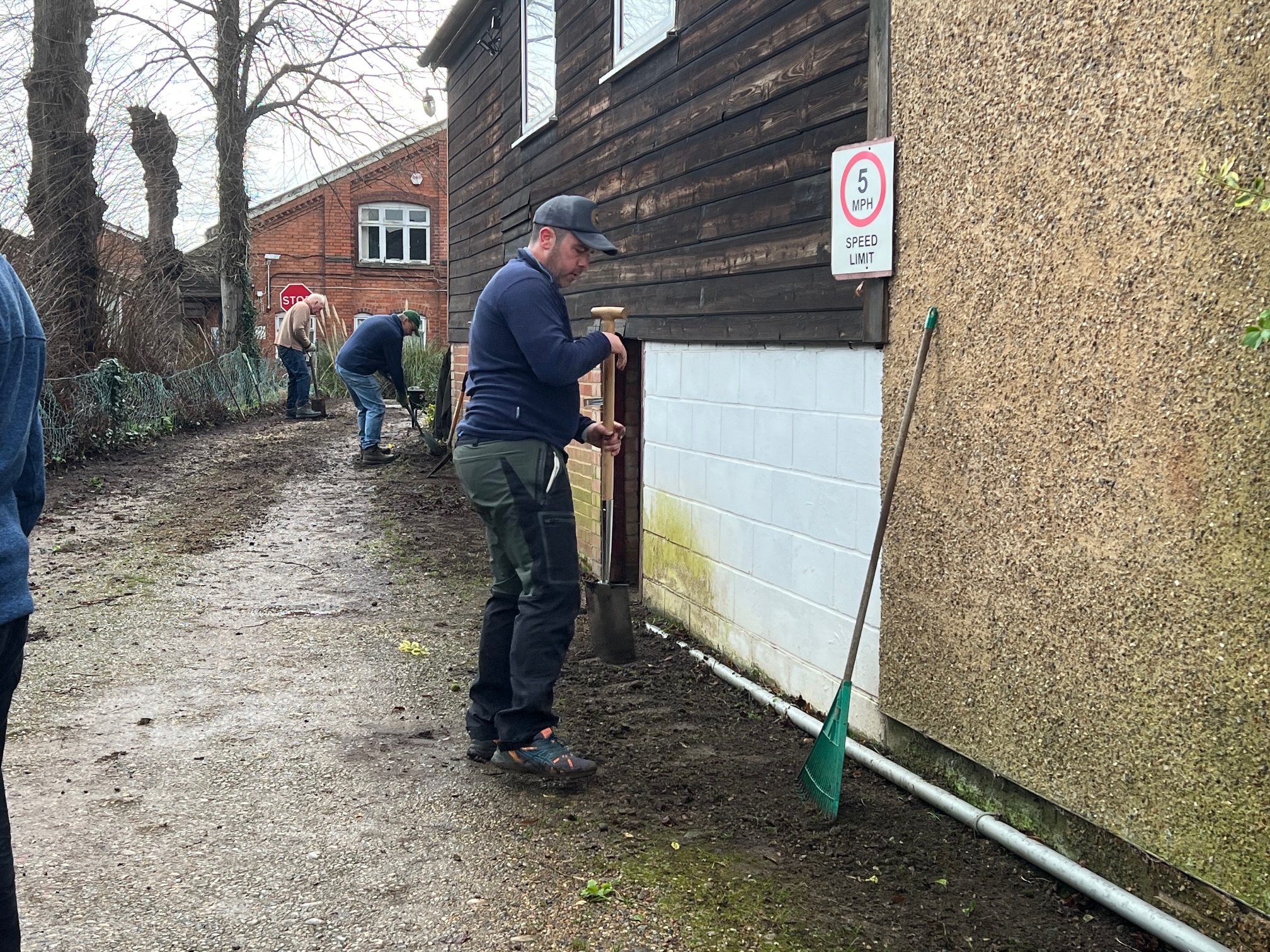Many tools were needed to tidy up the car park and drive way!! Nearly 30 volunteers turned up on a dry (thankfully) Saturday morning to clear away some encroaching vegetation, level up the side strip of the Clubhouse and fill in a few potholes. A whole skip was filled with waste and two huge bags of ballast were emptied around the site. Much more space was created and the area looks a lot clearer and tidier. Thanks goes to all who helped and for the teas, coffees and biscuits provided